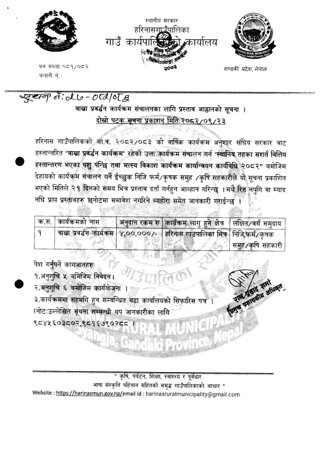 बाख्रा प्रवर्द्धन कार्यक्रम संचालनका लागि प्रस्ताव आह्वान। दोस्रो पटक प्रकाशन मिति २०८२/०९/२३