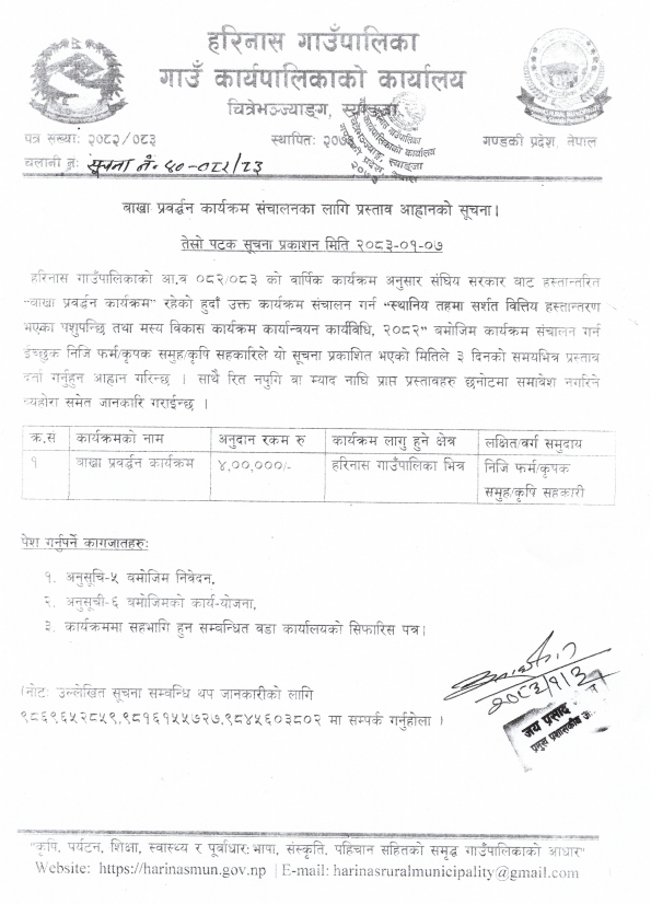 साझेदारीमा बाख्रा प्रवर्द्धन कार्यक्रम संचालन सम्बन्धी सूचना
